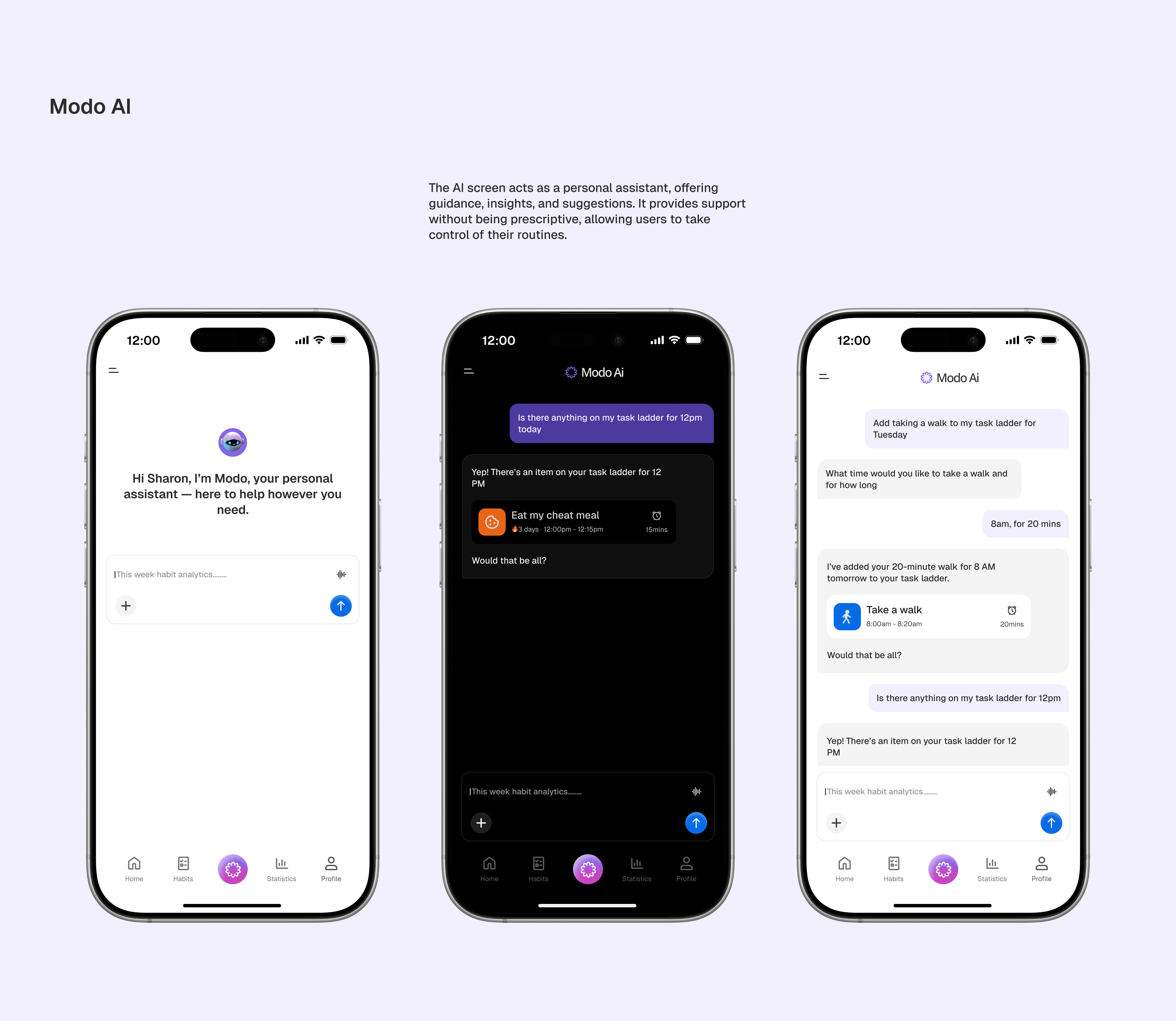 Modo is a habit tracker and daily planner that turns everyday routines into intentional actions. Built on the idea that consistency in small habits creates big results, Modo helps users stay organized, stay motivated, and stay on track — one step at a time. This design explores how structure, motivation, and focus can come together in a clean, simple mobile experience.