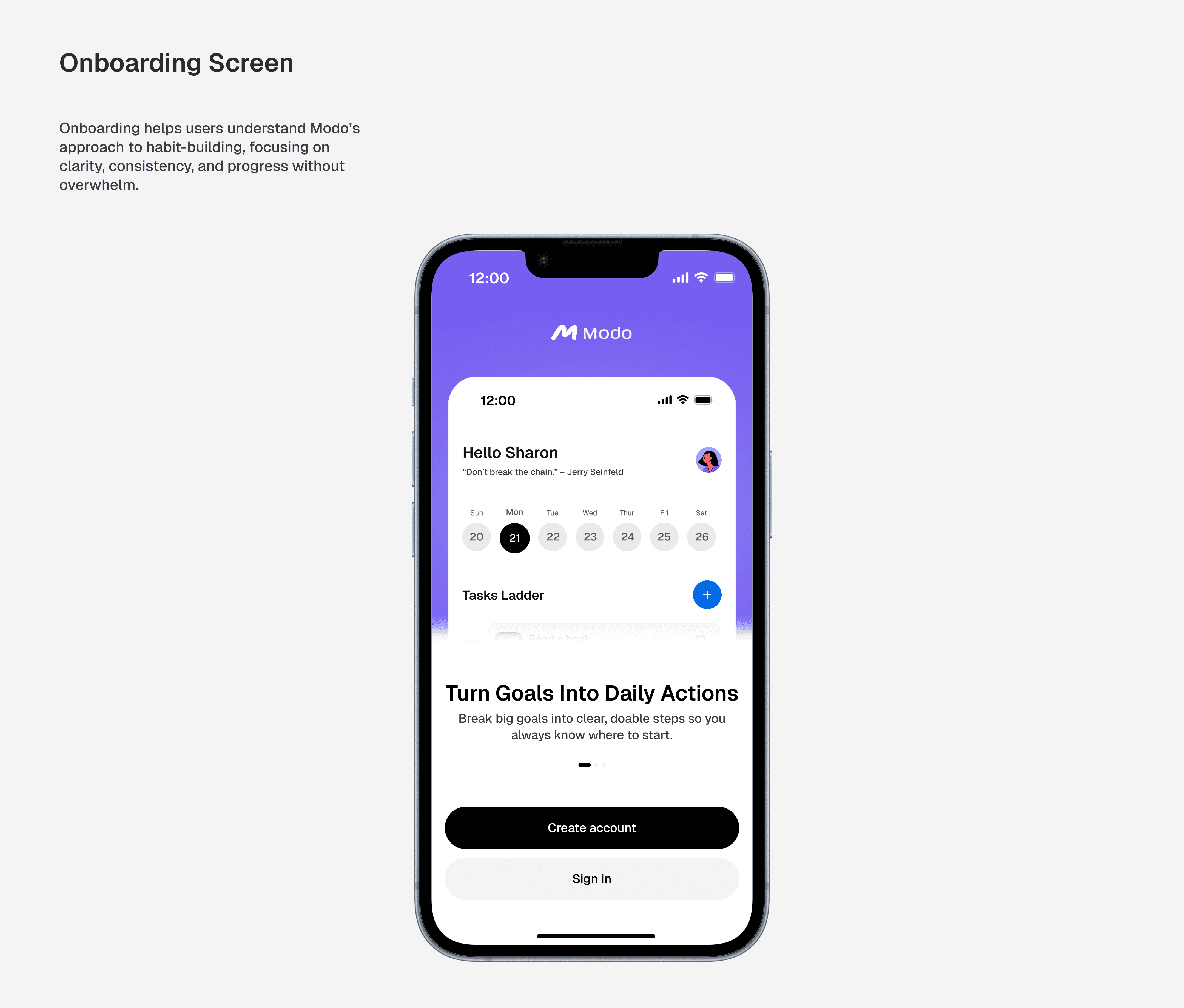 Modo was created to help users break down their tasks into simple, intentional actions, making it easier to stay organized, motivated, and consistently progress toward their bigger goals.
